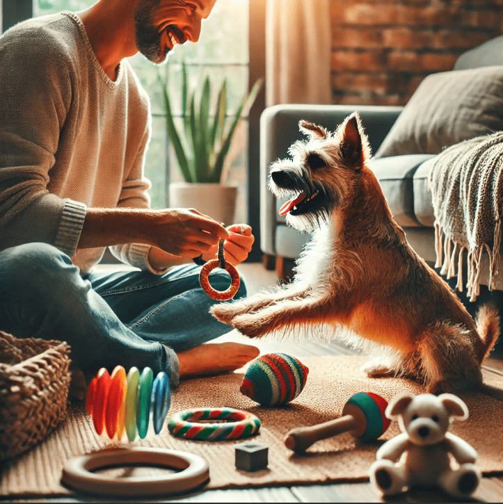 Interactive Puzzle Toys  Give your dog puzzle toys that hide treats inside.  Enhances problem-solving skills and mental engagement.  Rotate different toys to maintain your dog’s interest. Choose puzzles appropriate for your dog’s skill level.